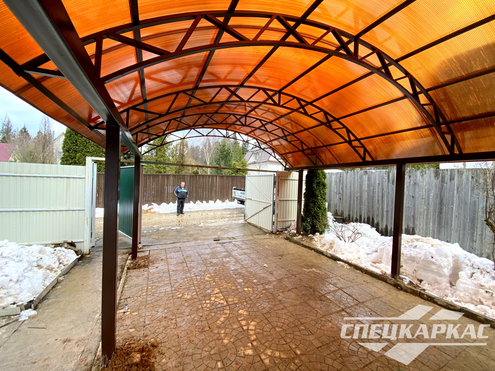 Навес из листов поликарбоната способен стать настоящей «изюминкой» частного дома и приусадебной территории. Полупрозрачные сооружения эстетичны и надежны. Их устанавливают всего за 1-2 дня, за ними легко ухаживать – достаточно чистой воды и неабразивного средства. На первый взгляд кажется, что без такой конструкции вполне можно обойтись. Но стоит купить навес из поликарбоната от компании «Спецкаркас» – и жизнь станет намного проще и комфортнее. Ваше авто больше не будет ржаветь под дождем, крыльцо останется чистым даже в снегопад, на участке появится уютная зона отдыха в кругу друзей и близких.